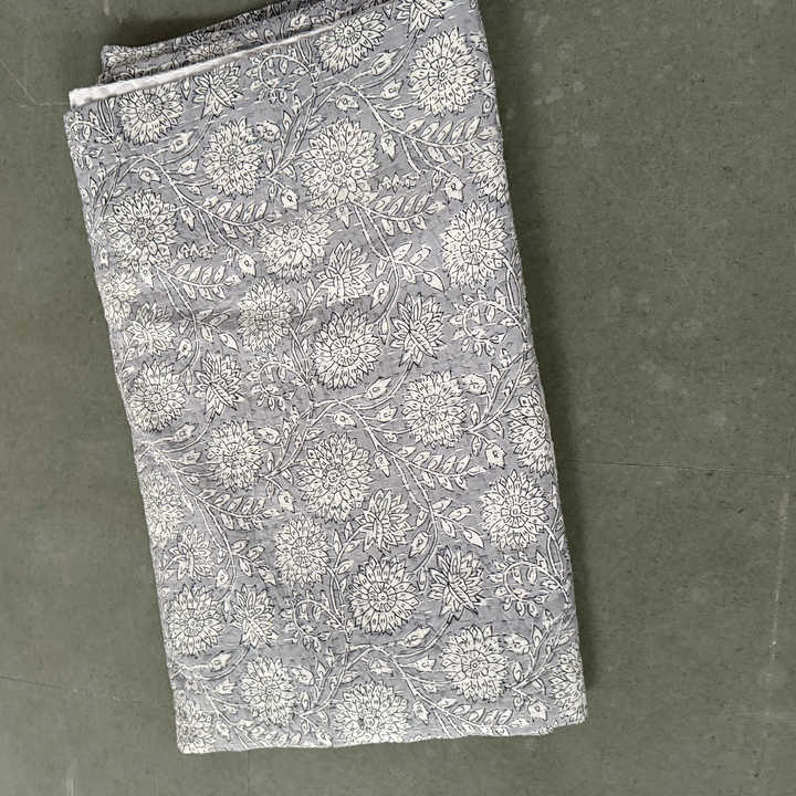 Indian Handmade Cotton Throw Blanket Traditional Indian Grey Floral Print Bedcover for Sofa Bedspread & Home Decoration
