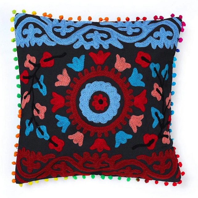 Indian Handmade Cotton Woven Floral Suzani Embroidered Vintage Bohemian Eco-Friendly Zipper Pillow Covers