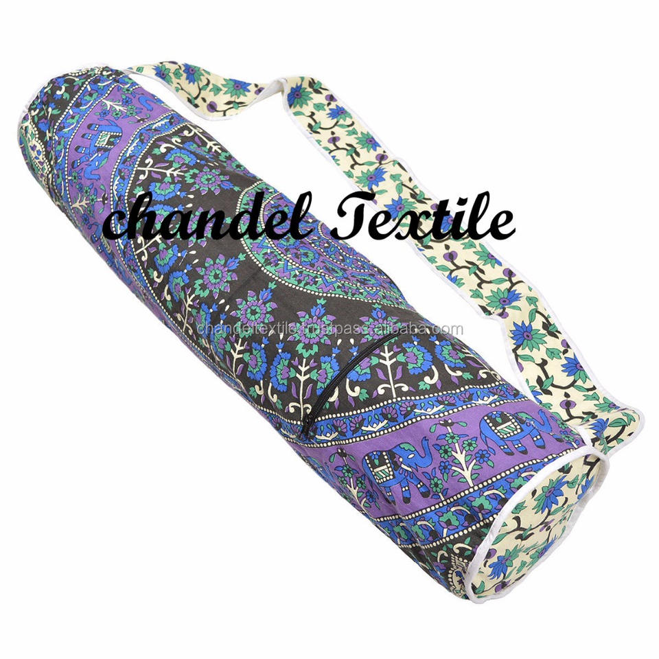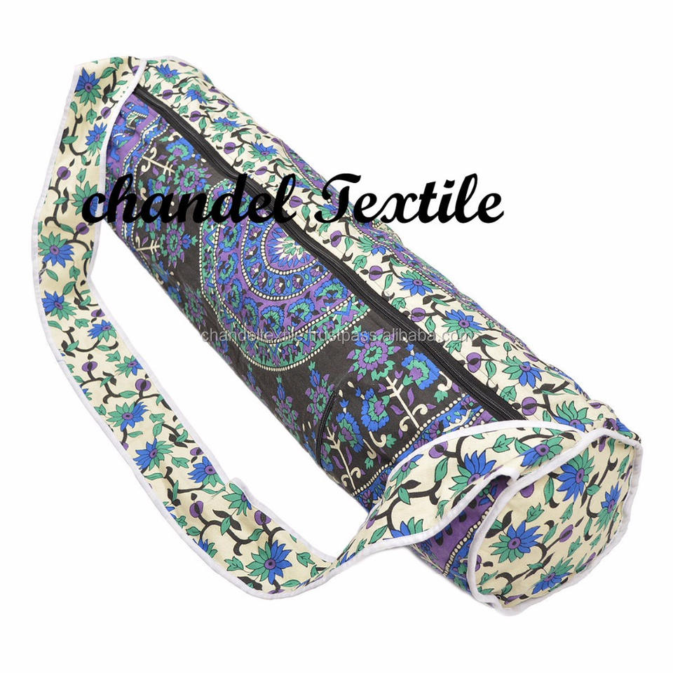 Indian Handmade Cotton Yoga Mat Bag Mandala Design Floral Open Style Shoulder Strap Purse Fashion Wholesale Printed Bag