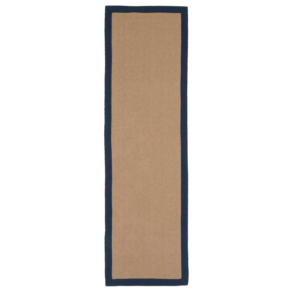 Indian Handmade Designer Jute Carpets Navy Border Jute Runner Area Rugs Hand Block Print Pattern Dhurries for Home Decor