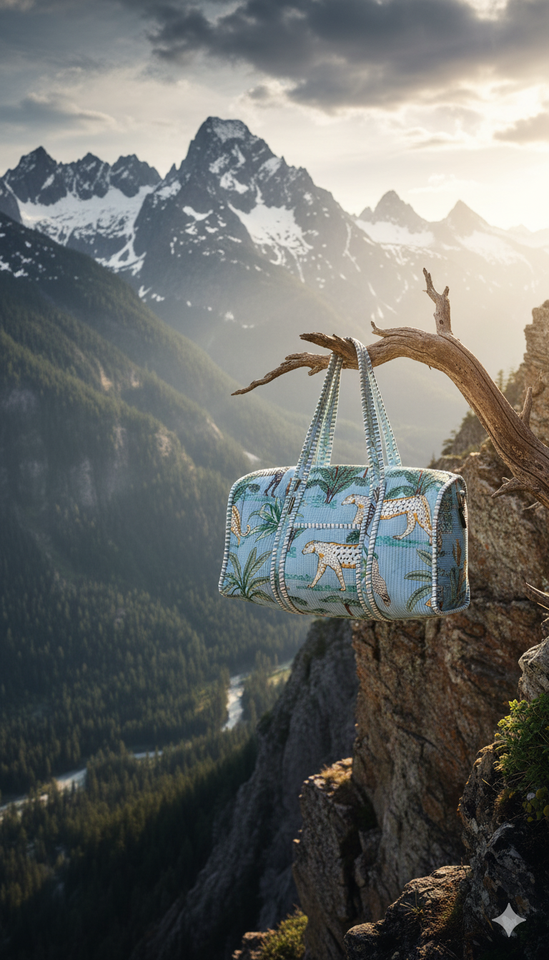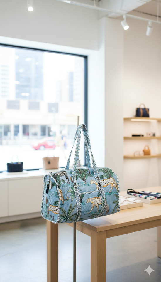 Indian Handmade Eco-Friendly Cotton Quilted Duffle Bag Lightweight Portable Canvas Lining Large Capacity Durable Shoulder Bag
