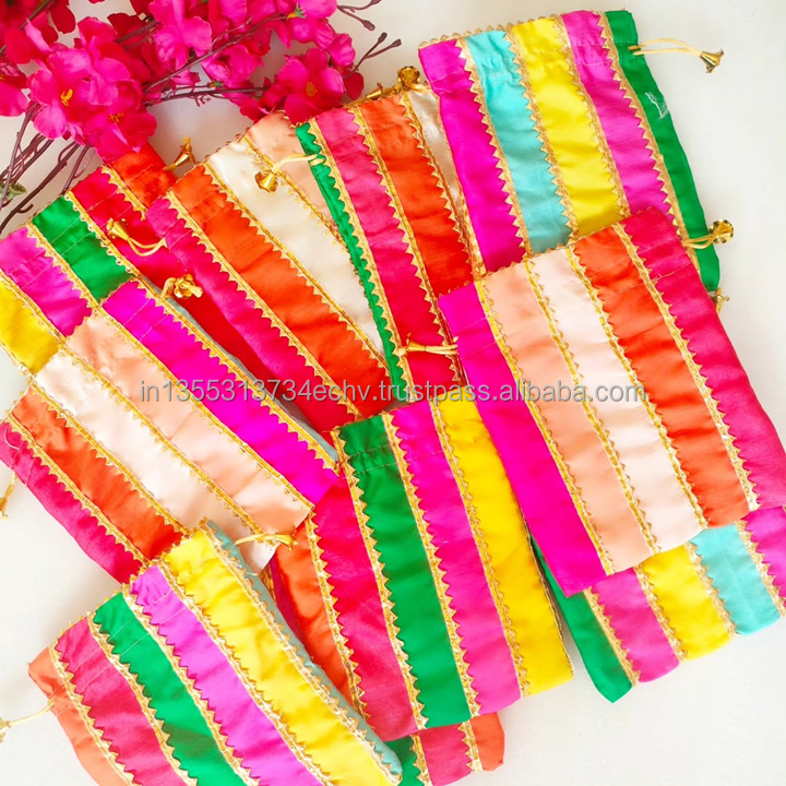 Indian Handmade Embroidery Satin Cotton Multicolor Drawstring Potli Bags Wedding Gift Party Favor Shagun Return Gift Bags