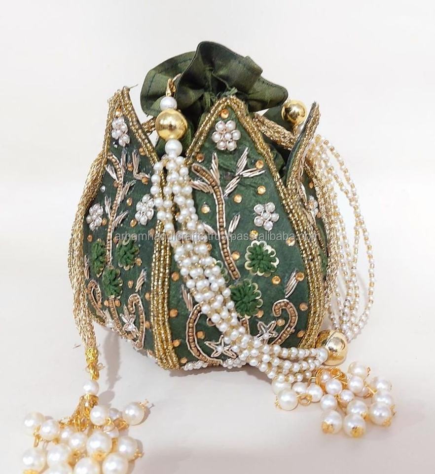 Indian Handmade Embroidery Work Potli Bags for Return Gift Bags Drawstring Bags Wedding Favour at Low Price by LUXURY CRAFTS
