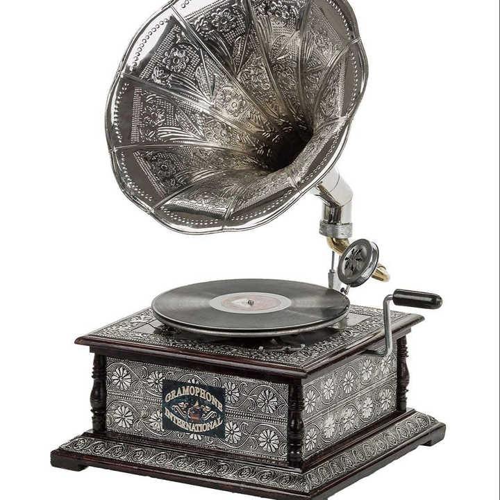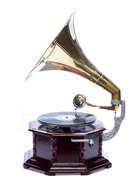 Indian Handmade Gramophone Showpiece Wooden Brass Decorative Antique/Vintage Style Gramophone for Table Decor