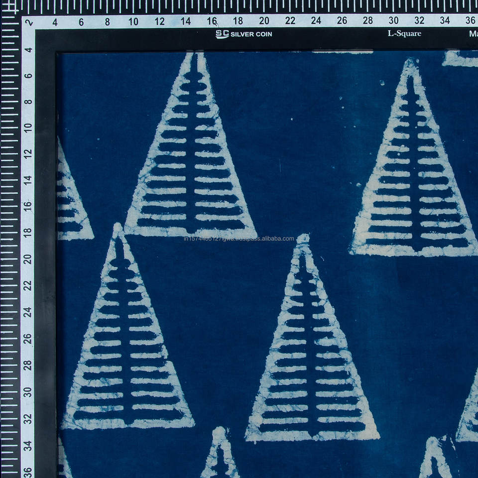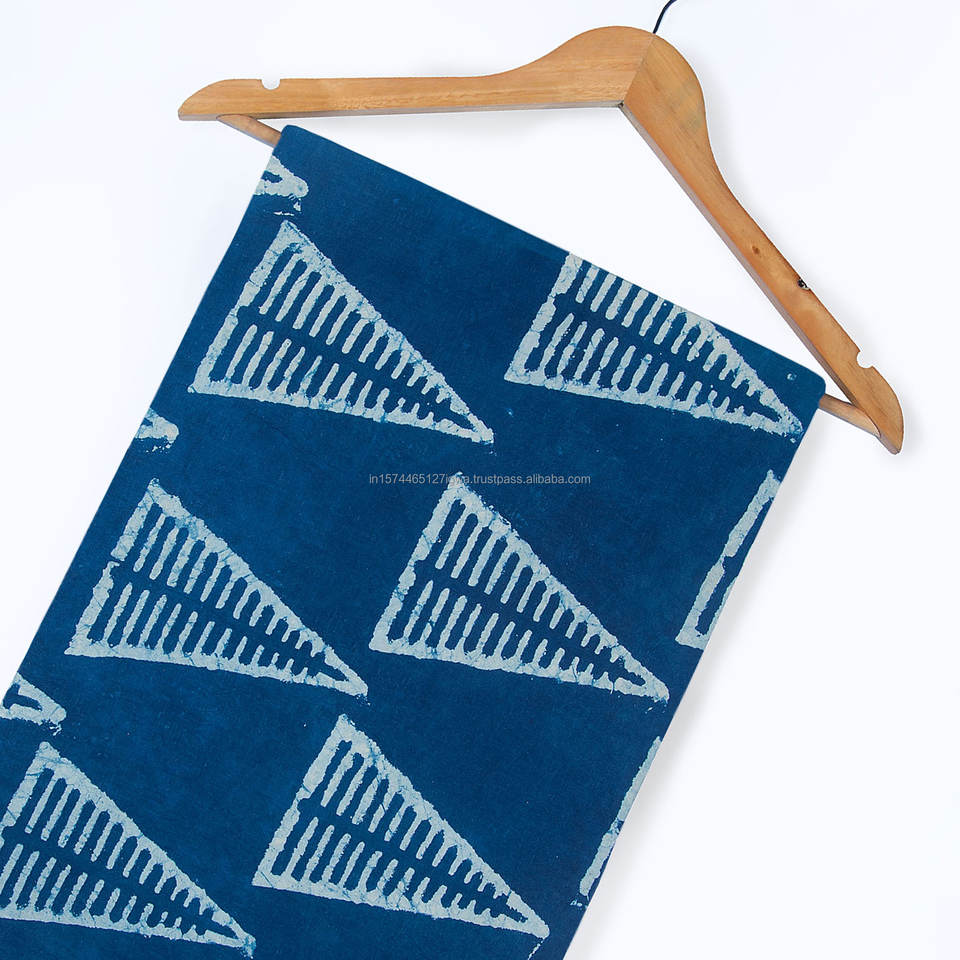 Indian Handmade Indigo Blue Fabric Eco-Friendly Triangle Block Print Pure Cotton Organic 120gsm Woven Technique for Dress Home