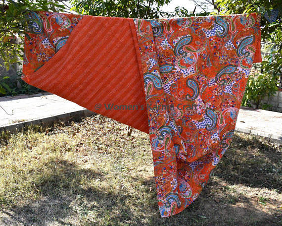 Indian Handmade Kantha Quilt Reversible Blanket cotton reversible bedspread