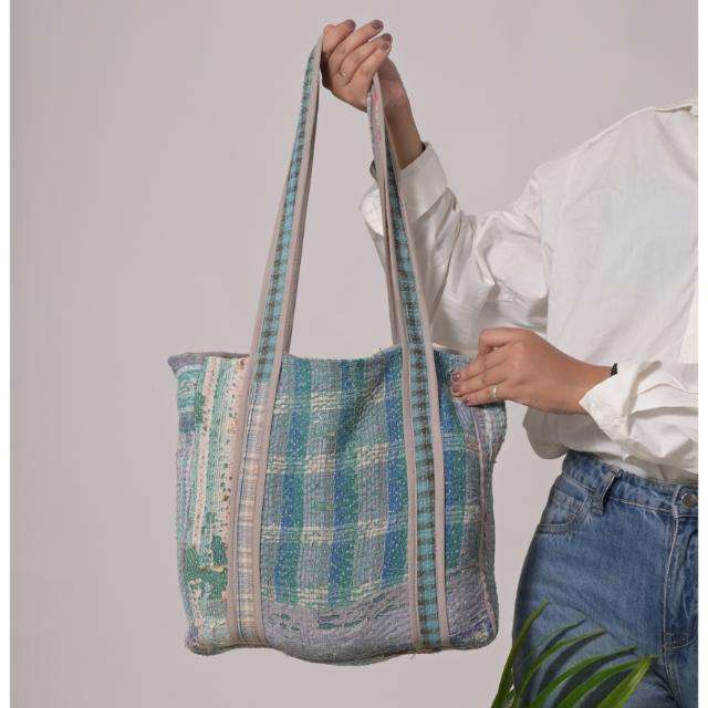 Indian Handmade Kantha Tote Vintage Boho Cotton Bag, Womens Purse, Reusable Shopping & Grocery Bag