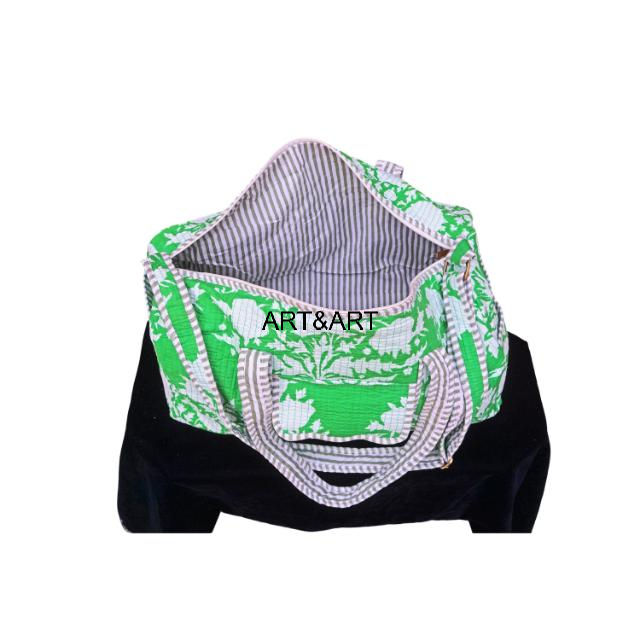 Indian Handmade Leather Shoulder Tote Bag Printed Quilted Floral Duffle bag for Everyday Shopping Floral Print Gift for women