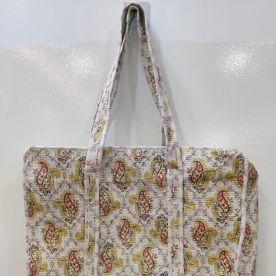 Indian Handmade Lightweight Cotton Printed Quilted Shoulder Bag Hand Block Printed Indian Handmade Cotton Shopping Tote Bag