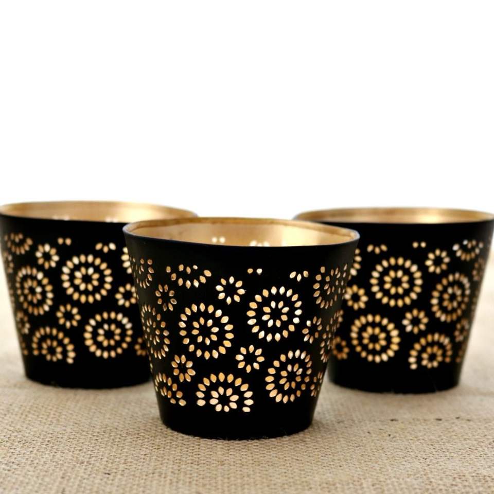 Indian Handmade Metal Votive Candle Holder Black Finish Latest Design for Wedding Table Lighting Home Decor Glass Candle Jars