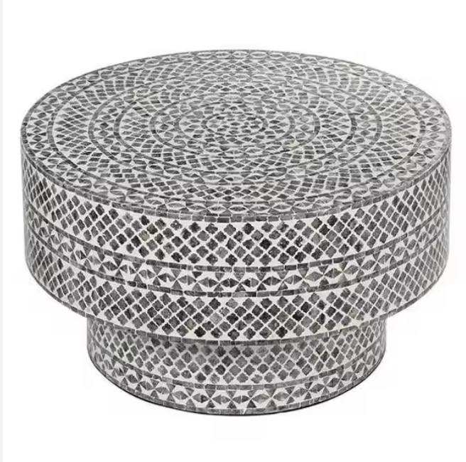 Indian Handmade Modern Black Coffee Table Gold Plated with Rustic Antique Side Table Customized for Living Room Home Furniture