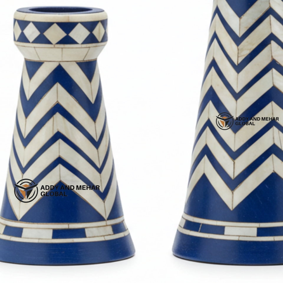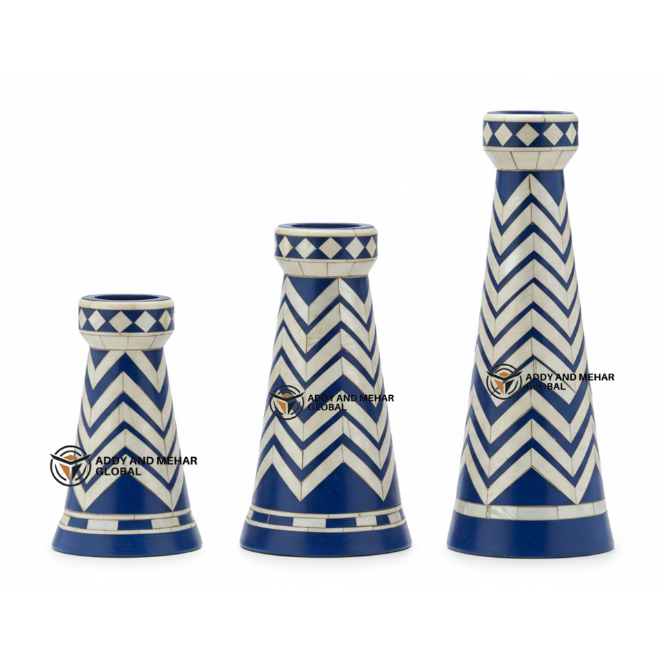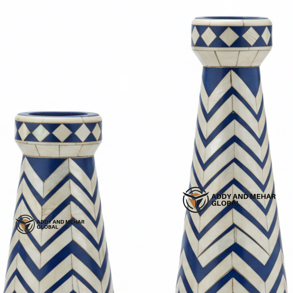 Indian Handmade Mother of Pearl Candle Stand Set with Chevron Pattern Christmas Home Decor-Durable & Light Weight
