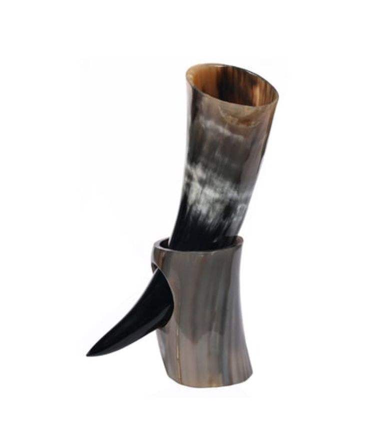 Indian Handmade Natural Ceramic Viking Drinking Horn High Quality Christmas Party Cup with Stand Antique Carved Design