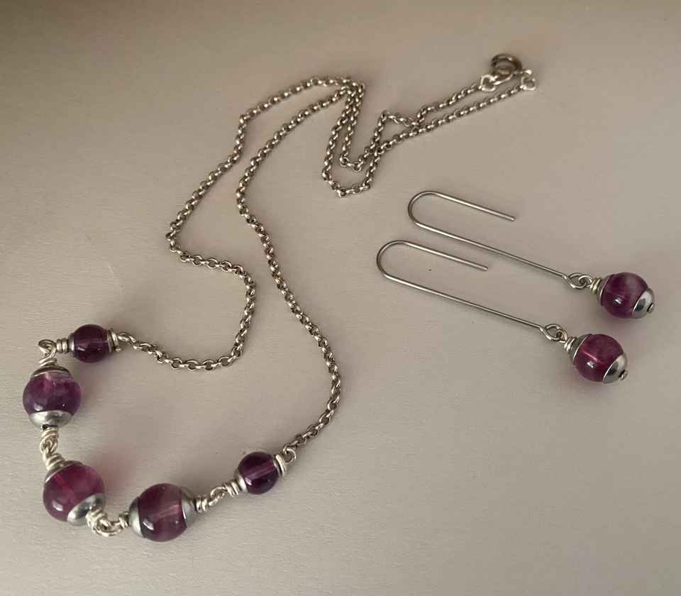 Indian Handmade Necklaces Purple Pink Fluorite Beaded Necklace & Earrings Set for Women and Girls Wear in Wedding Party's