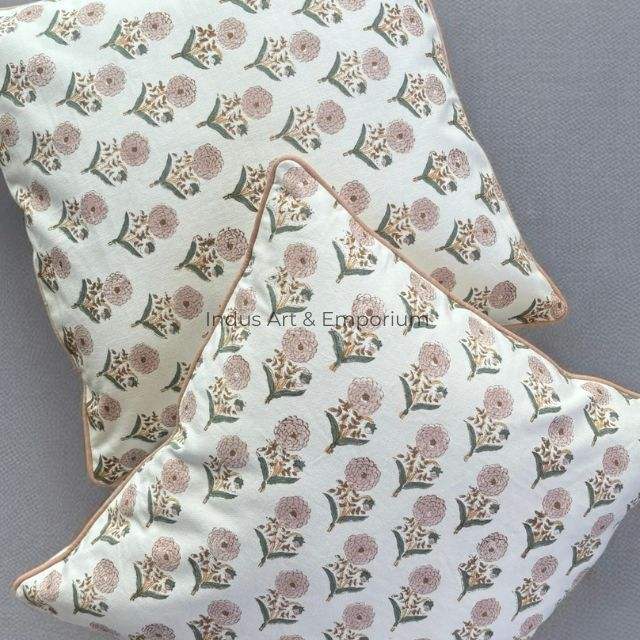 Indian Handmade New Design Beautiful Peach Flower Hand Block Printed Pillow Case Sofa Cushion Cover Bedding Cushion Cover