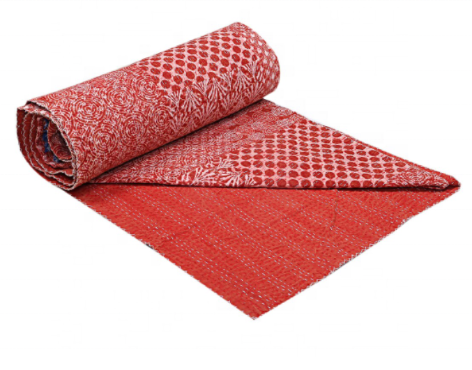 Indian Handmade Organic Printed Kantha Quilts Simple Eco-Friendly 100% Cotton Reversible Bedspread for Home Hotel Wholesale OEM