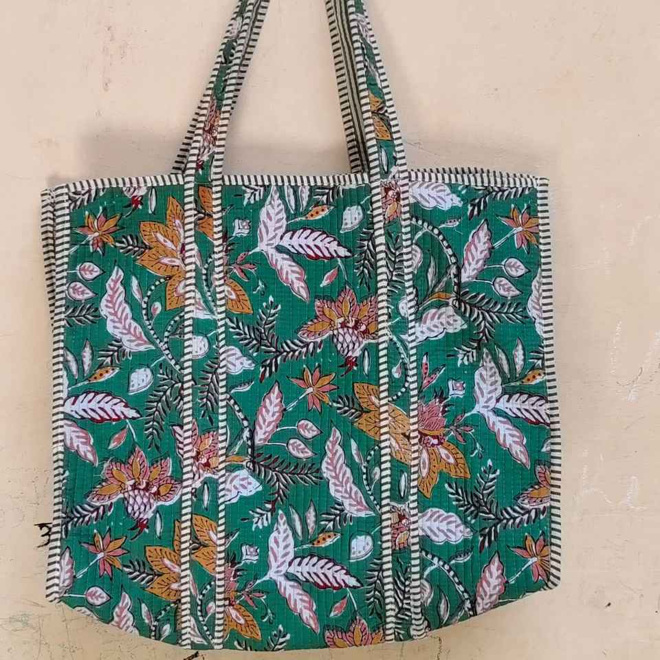 Indian Handmade Quilted Shoulder Bag Large Cotton Beach Bag Open Closure Hand Block Printed Design for Women Summer Autumn Use