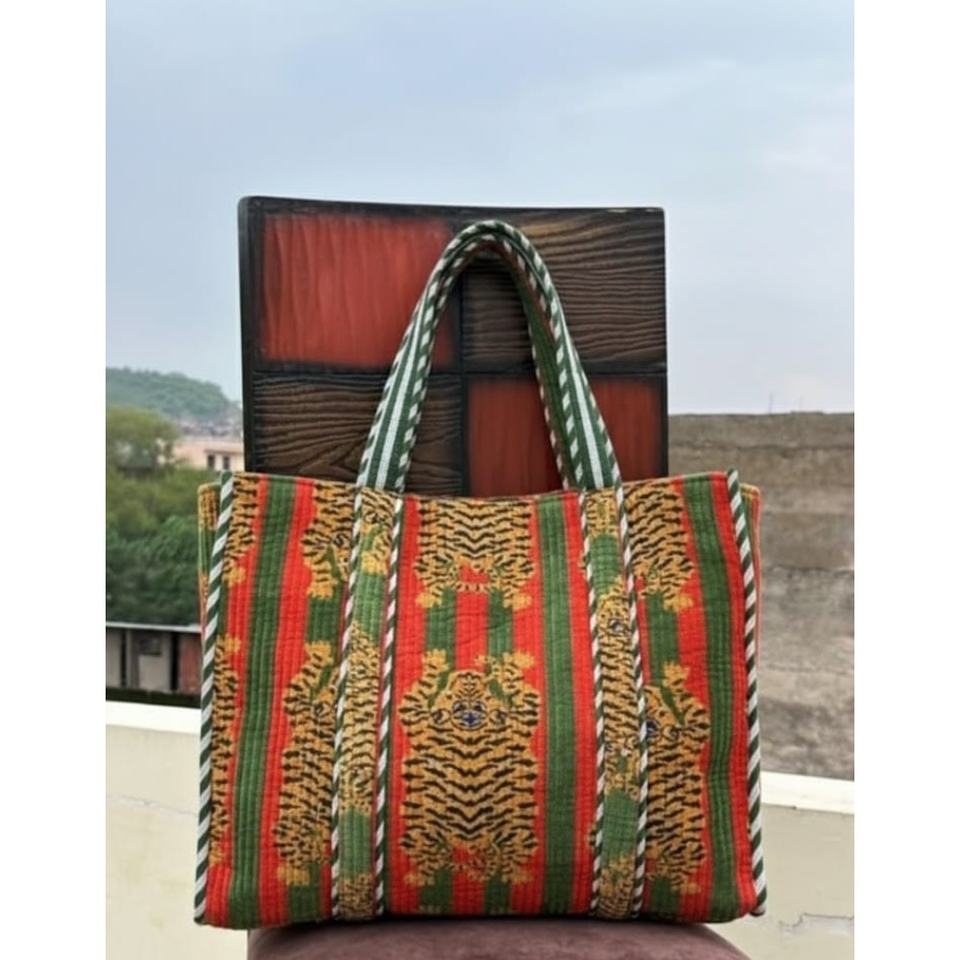 Indian Handmade Quilted Tote Bags for Women Soft Velvet Vintage stylish printed Stylish Quilted Shopping Bag Zipper Closure Bags