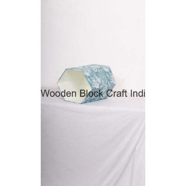 Indian Handmade Rajasthan hexagonal Rolling Cover Type Open Top Geometric Pattern Wood Eco Friendly Decorative dust Bin