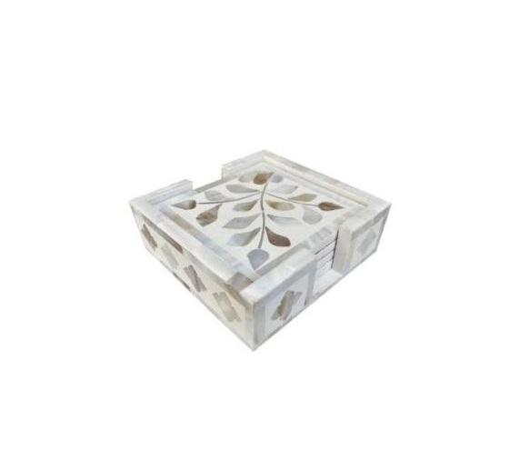 Indian Handmade Rattan Coasters Set with Mother Pearl Mosaic Natural Table Decor Drink Coasters Mats & Pad For Kitchen Hotel Use