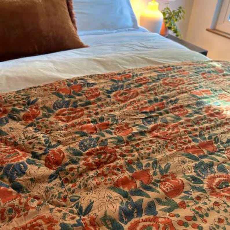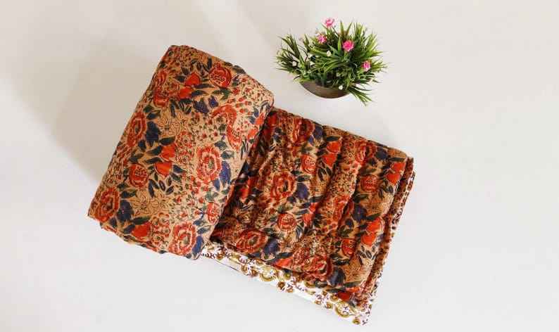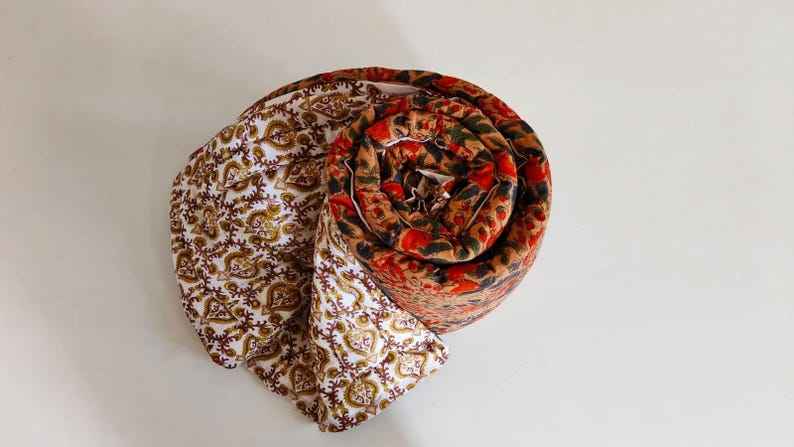 Indian Handmade Razai Hand Block Cotton Reversible Quilt Blanket Bedspread