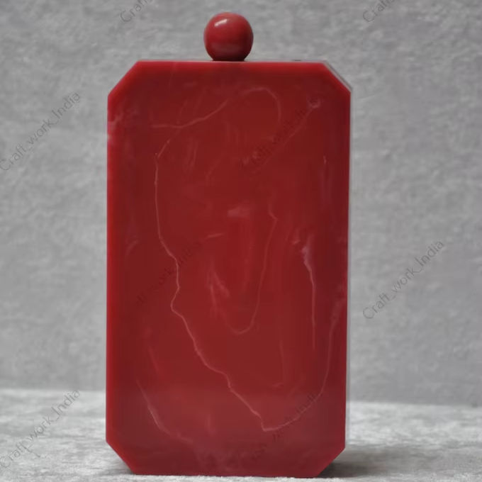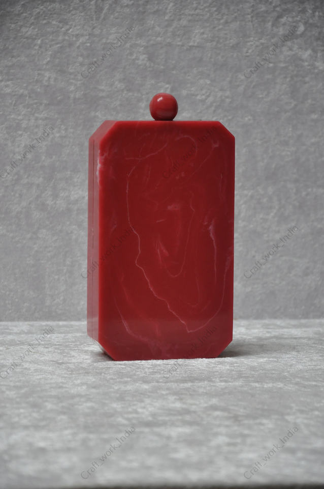 Indian Handmade Red Resin Clutch Bag for Women Luxury Evening Party Wedding Designer Hard Case Purse with Statement Knob