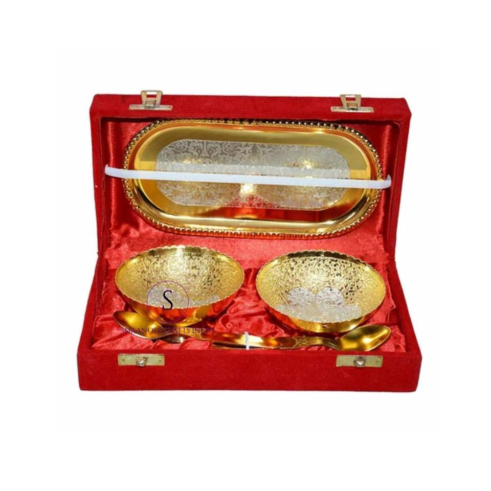 Product Name:Tray Silver And Gold Plated Royal Bowls Set