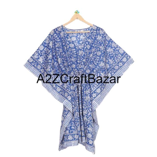 Indian Handmade Short Kaftan Floral Block Print Eco-Friendly Washable Natural Sleepwear Kimono Robe Dress Short Beach Coverup