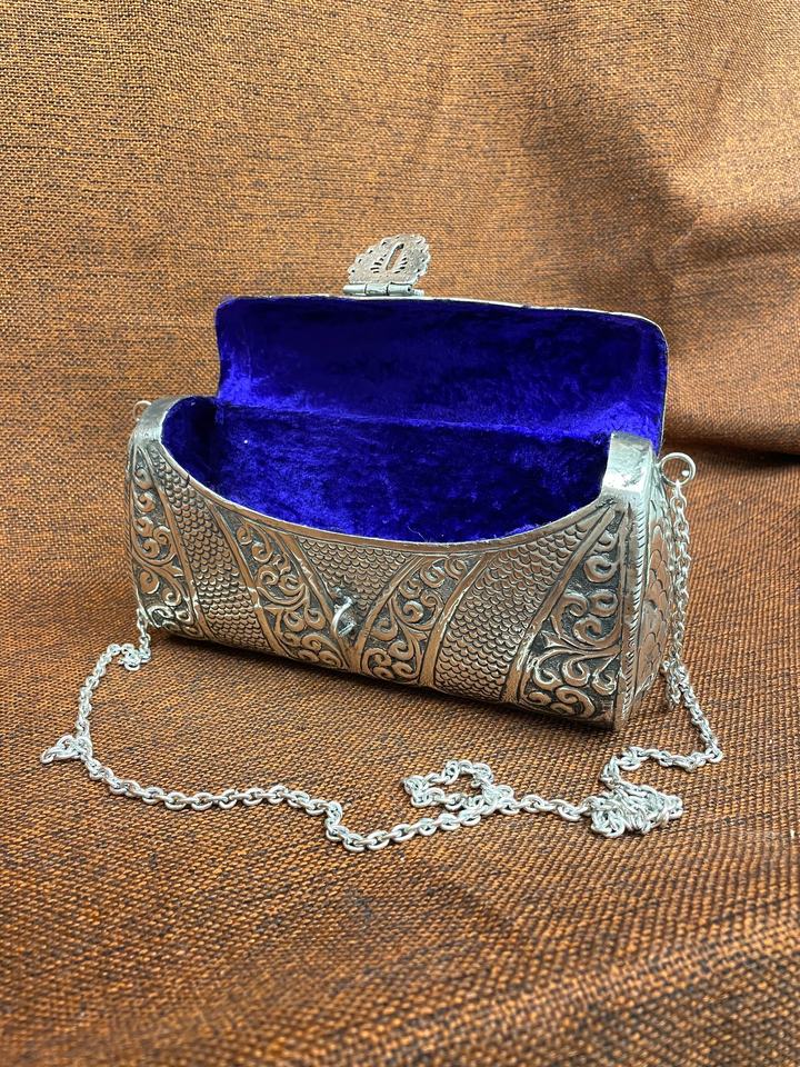 Indian Handmade Silver Metal High Grade Brass Handbags for Women Fashion Silver Plated Handicraft Clutch With Side Chain