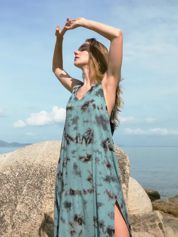 Indian Handmade Tie Dye Summer New Arrival for Women Wear Rayon High Leg Spaghetti Sleeveless V Neck Maxi Long Dress