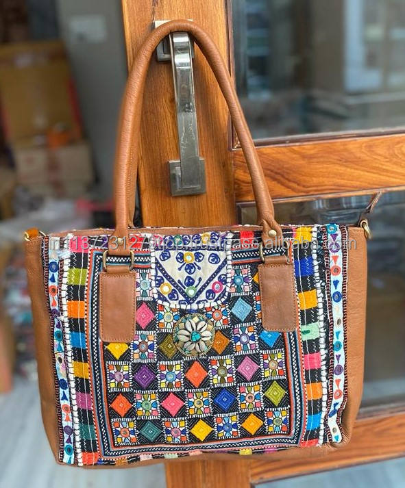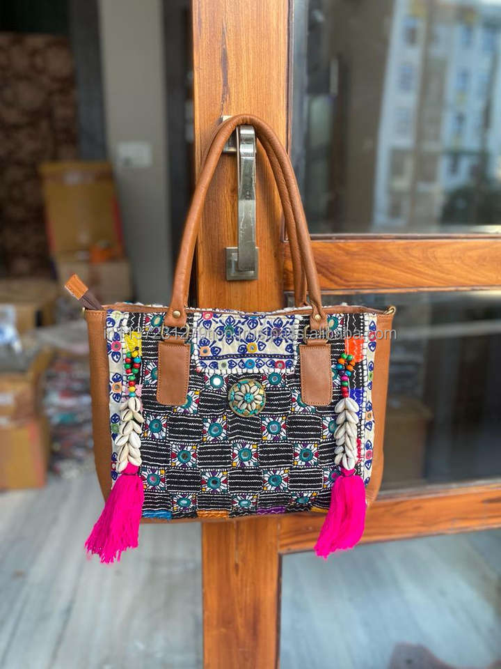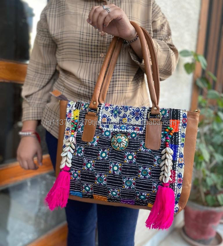 Indian Handmade Traditional Embroidered Handbag Women Vintage Banjara Tassel Shopping Bag Stylish Boho Hippie Seashell Tote Bag