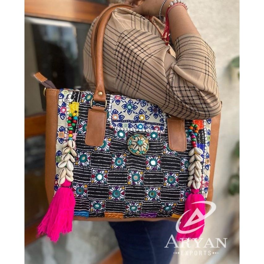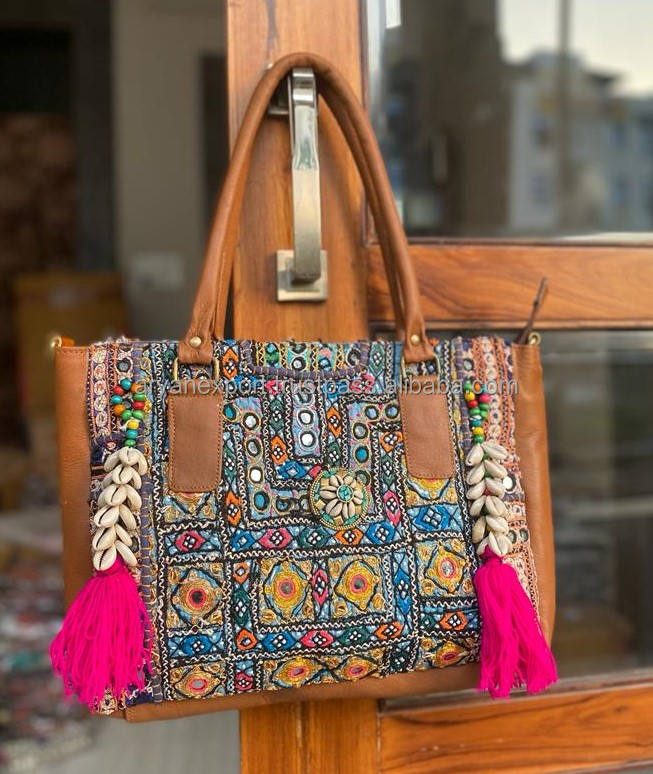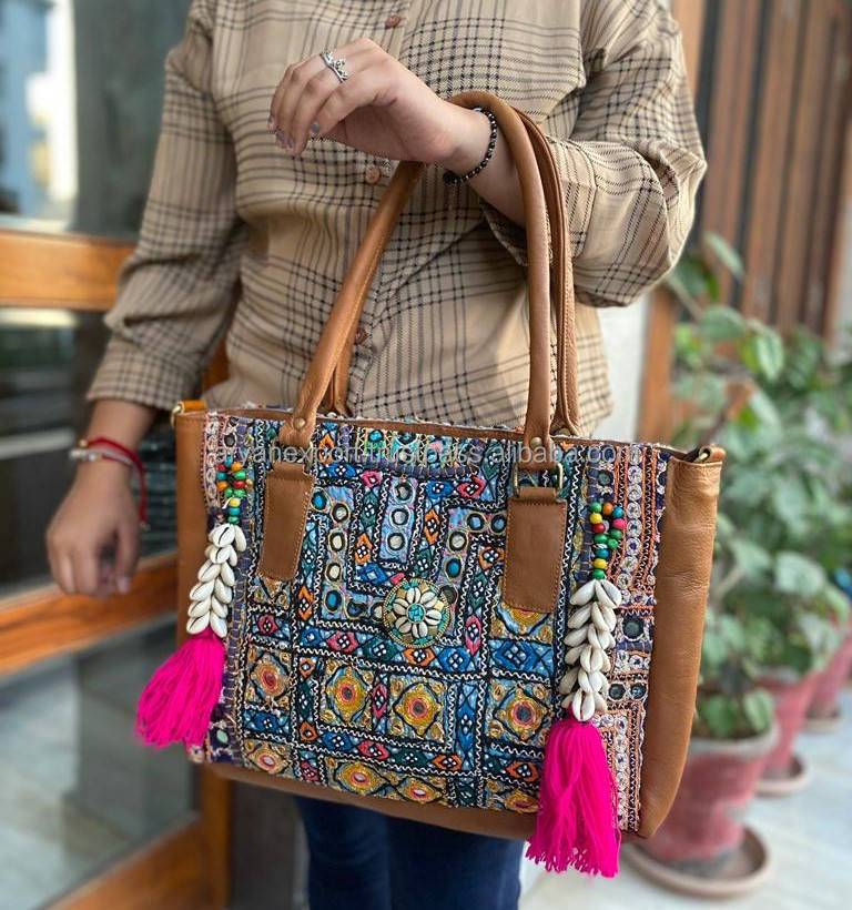 Indian Handmade Traditional Embroidered Handbag Women Vintage Banjara Tassel Shopping Bag Stylish Boho Hippie Seashell Tote Bag
