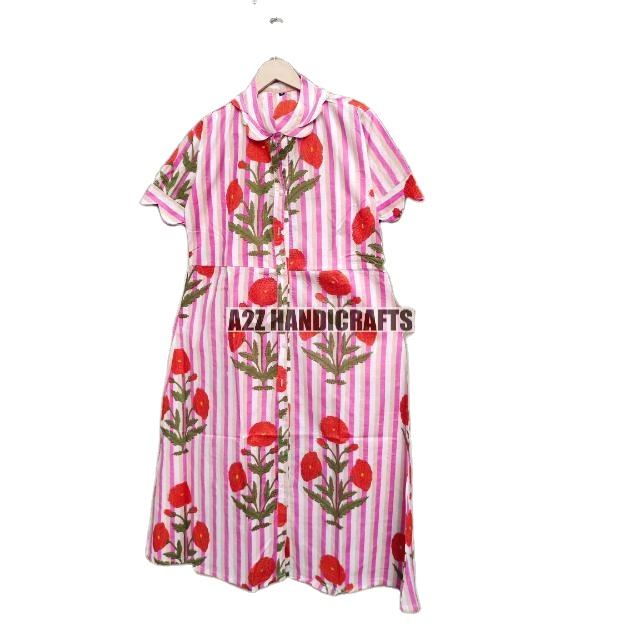 Indian Handmade V-Neck Long Dress With Pocket Cotton Women Party Wear Light Weight Dress Floral Hand Block Print Women Dress