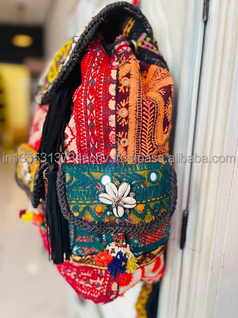 Indian Handmade Vintage Banjara Bags Fabric Backpack Embroidery for Women Girls Casual Style Evening Shopping Sack Eco-Friendly