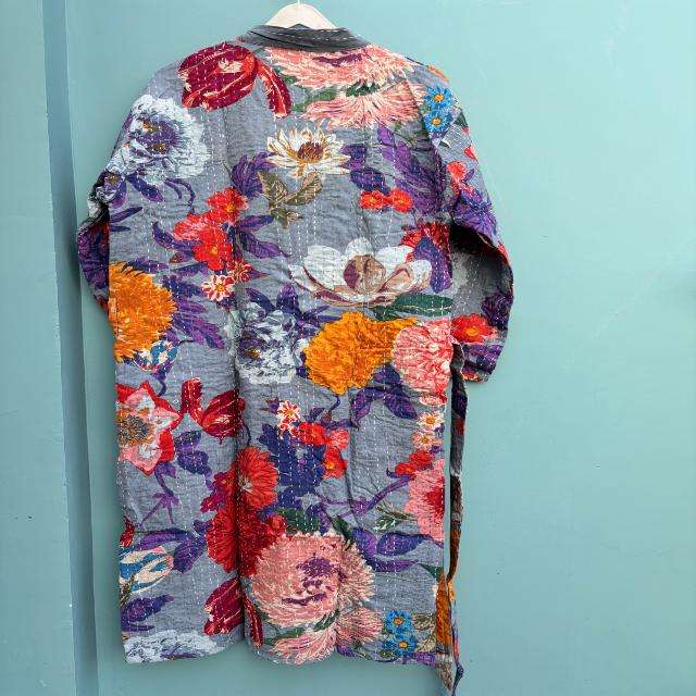 Indian Handmade Vintage Cotton Kantha Kimono Lightweight Women's Long Coat & Unisex Jacket Winter Wear Gift for Her