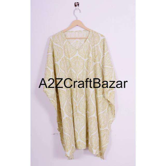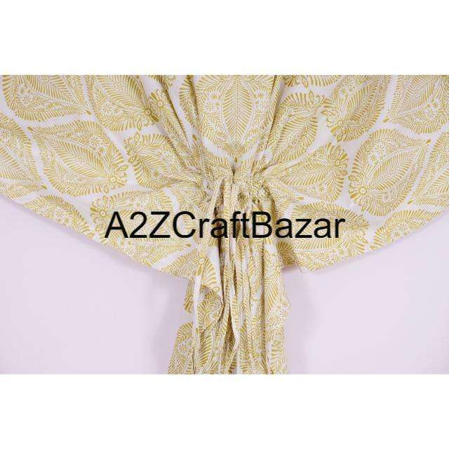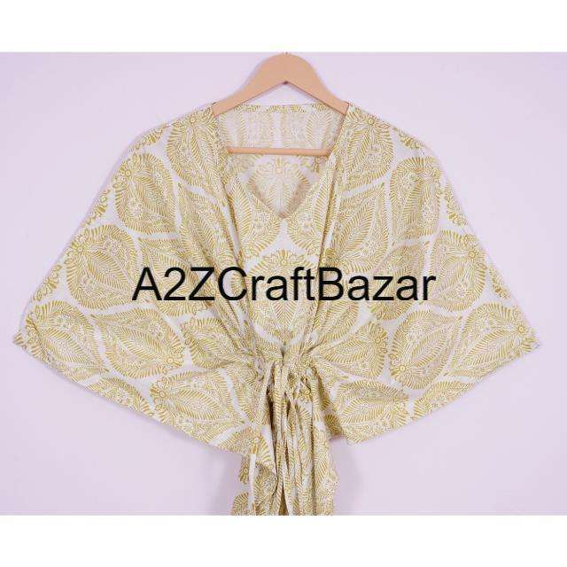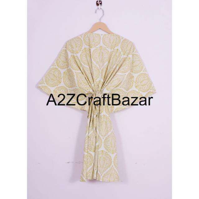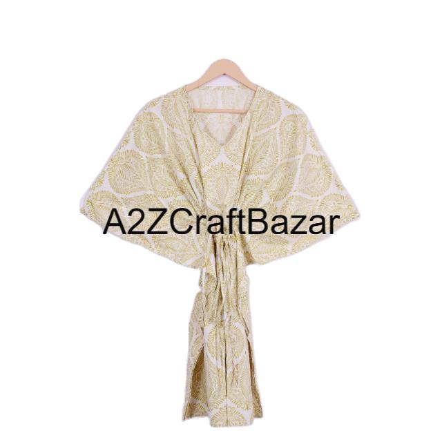 Indian Handmade Vintage Short Kaftan Floral Block Print Eco-Friendly Washable Natural Sleepwear Kimono Robe Dress Short Kaftan
