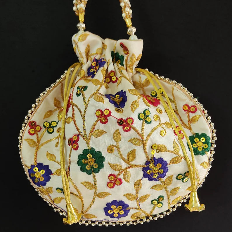 Indian Handmade Women's Embroidered Clutch Purse Potli Bag Pouch Drawstring Bag Wedding Favor Return Gift for Guests Free Ship
