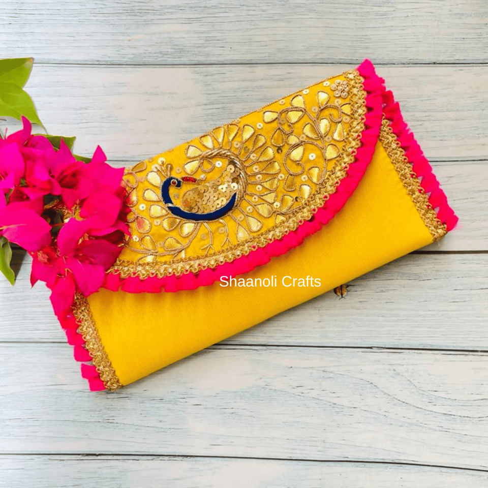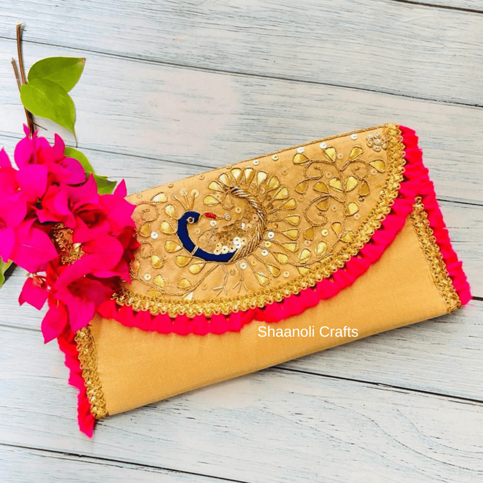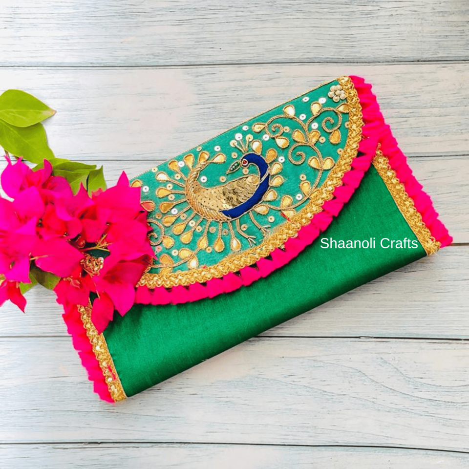 Indian Handmade Women's Embroidered Gota Patti Peacock Design Women's Clutch Bags Bridesmaid Wedding Favor Return Gift