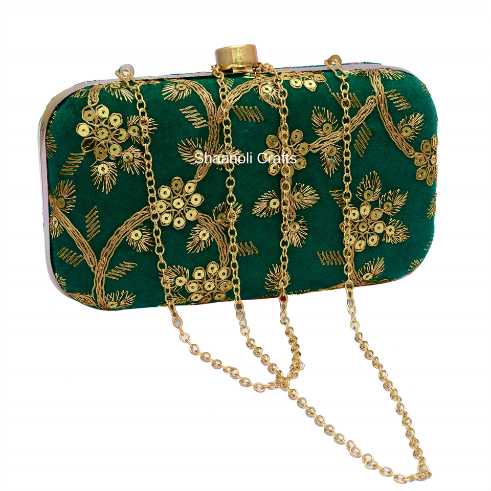 Indian Handmade Women's Golden Embroidery Clutch Purse Bag for Woman Wedding Favor Return Gift Embroidered Women Hand Bags
