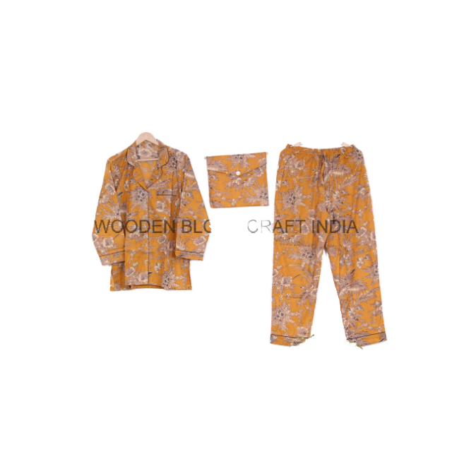 Indian Handmade floral Printed pure cotton Pajamas Set for Women Nightdress Women Nightwear Morning Yoga Wear Bridesmaid Pajama