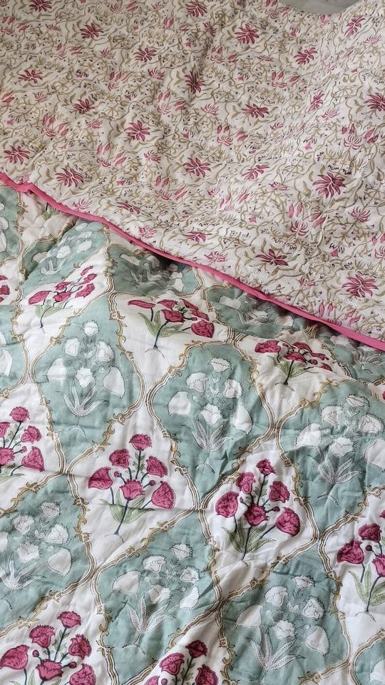 Indian Jaipuri Block Print Quilt Printed Reversible Razai Cotton Handmade Floral Quilt Jaipuri Razai Bedspread Comforter