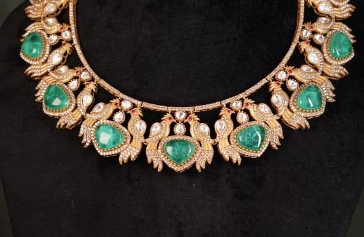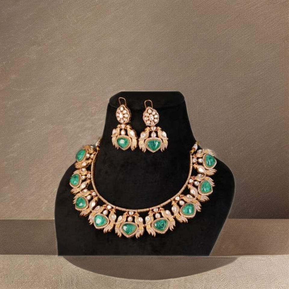Indian Jewellery Gold Plated Designer Polki Necklace Set with Earrings Bridal Jewelry for Wedding & Party Celebration