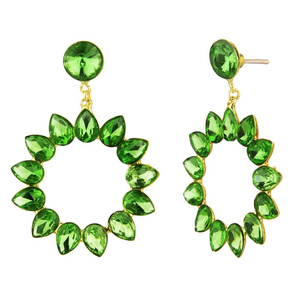 Indian Jewellery Manufacture Gold Plated Crystal Dangle Drop Earrings Wholesale Jewelry, Green