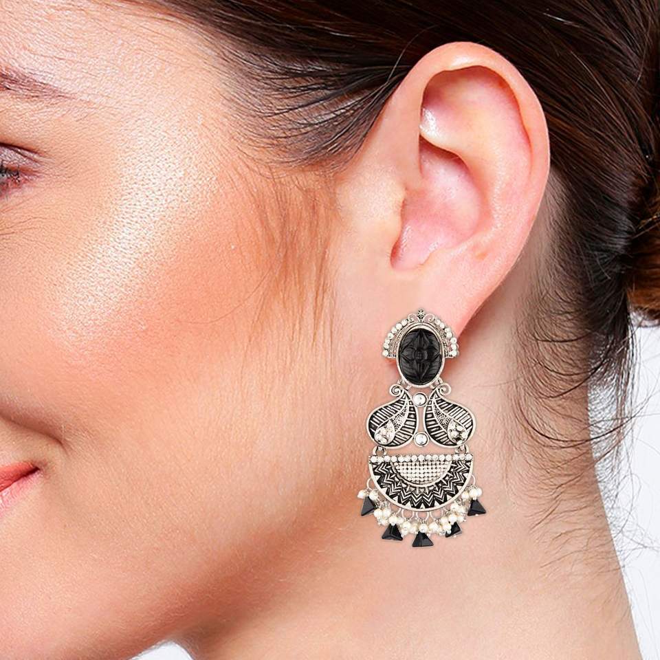 Design:Antique handmade boho vintage oxidized silver earrings set