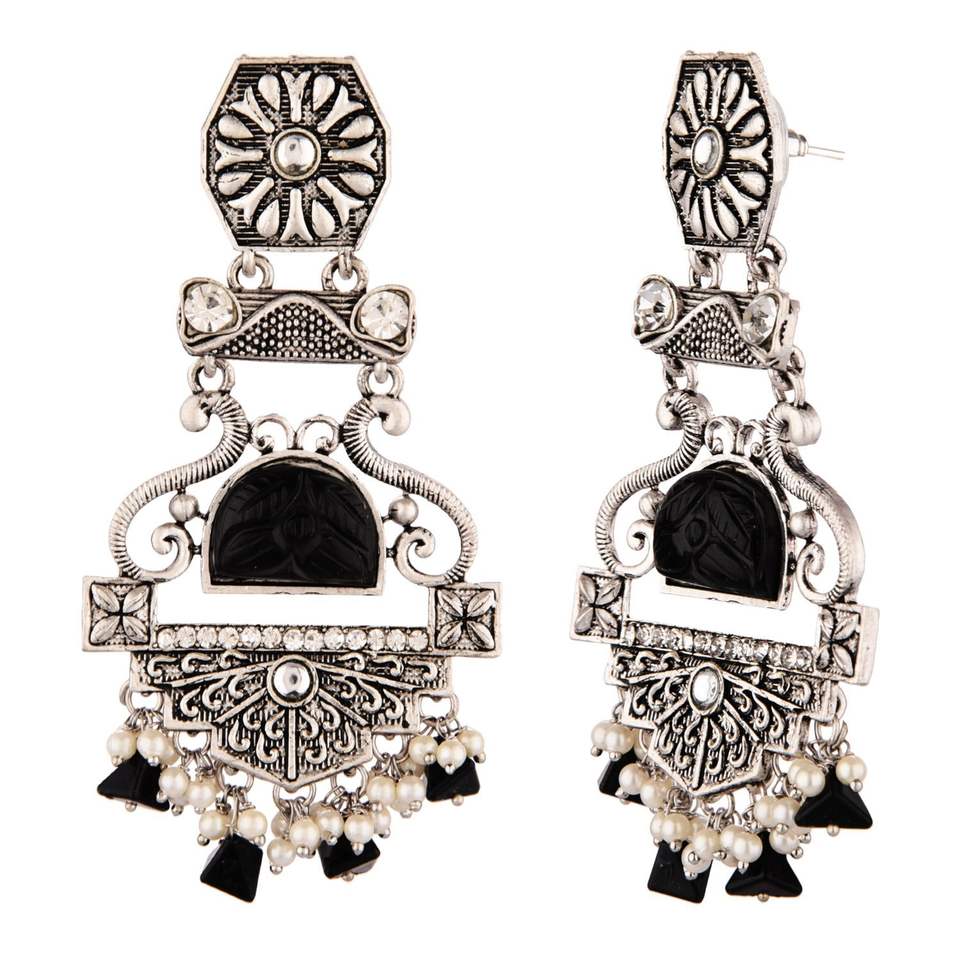Indian Jewellery Manufacturer Oxidized Boho Vintage Earrings Jewelry Rhinestone Crystal Dangle Drop Earrings, Black