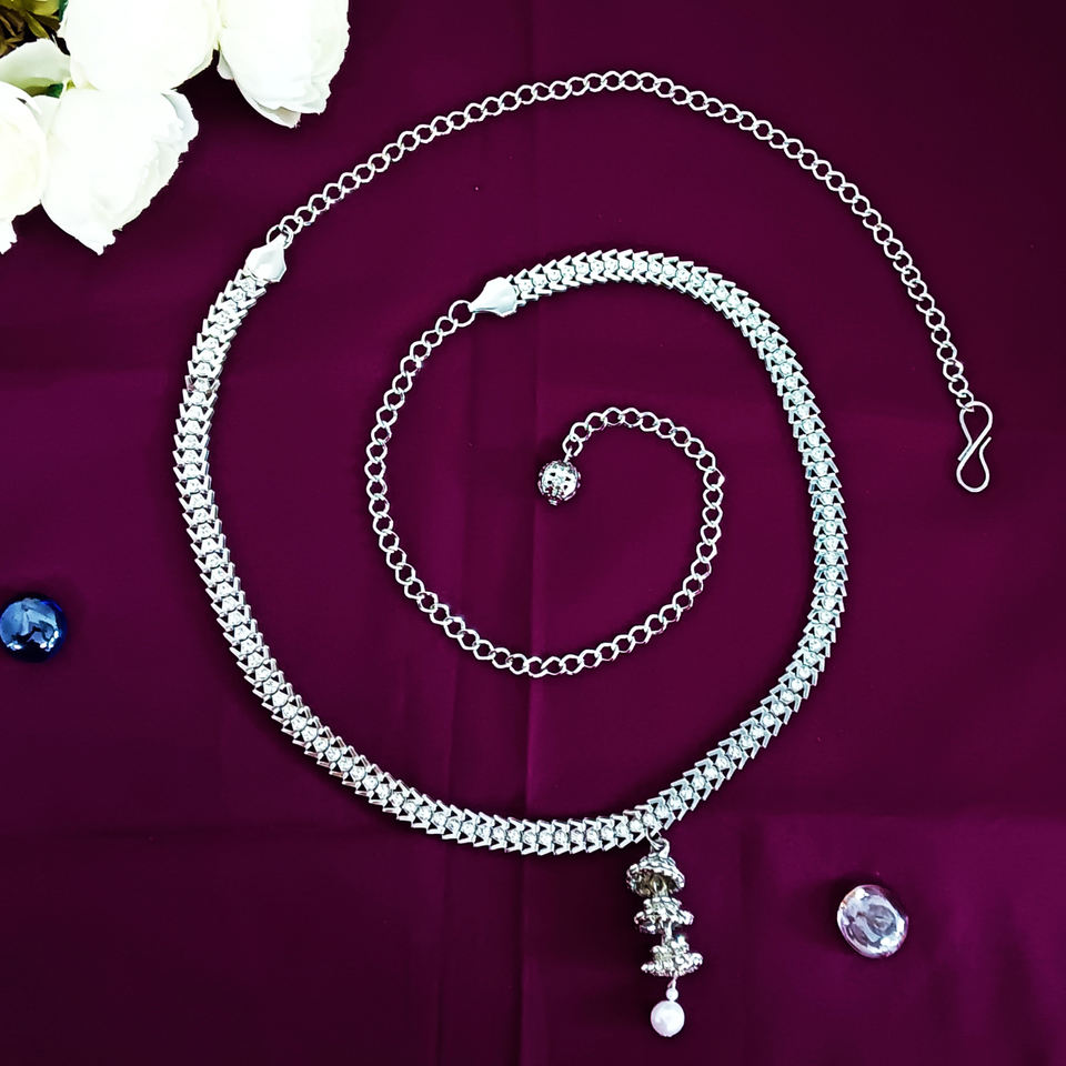 Indian Jewellery Manufacturers CZ Crystal Bridal Silver Tassel Waist Belt Chain Kamarband Body Jewelry For Women
