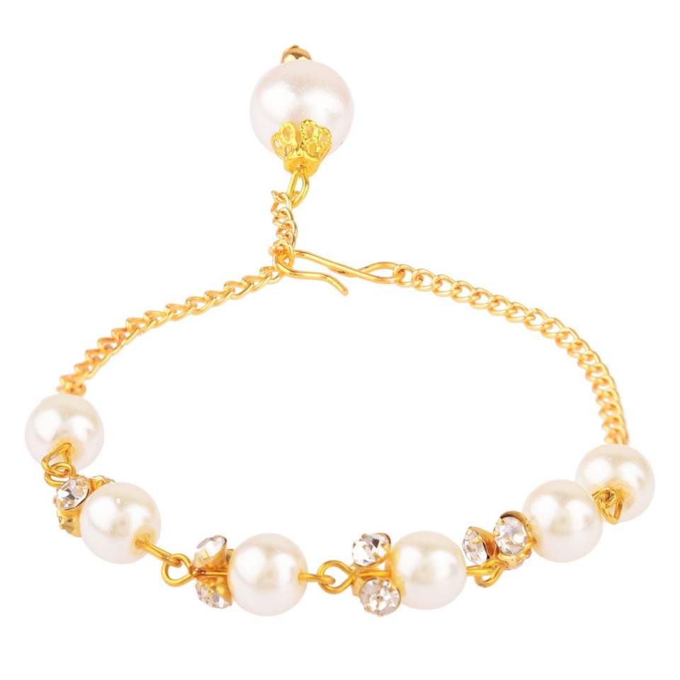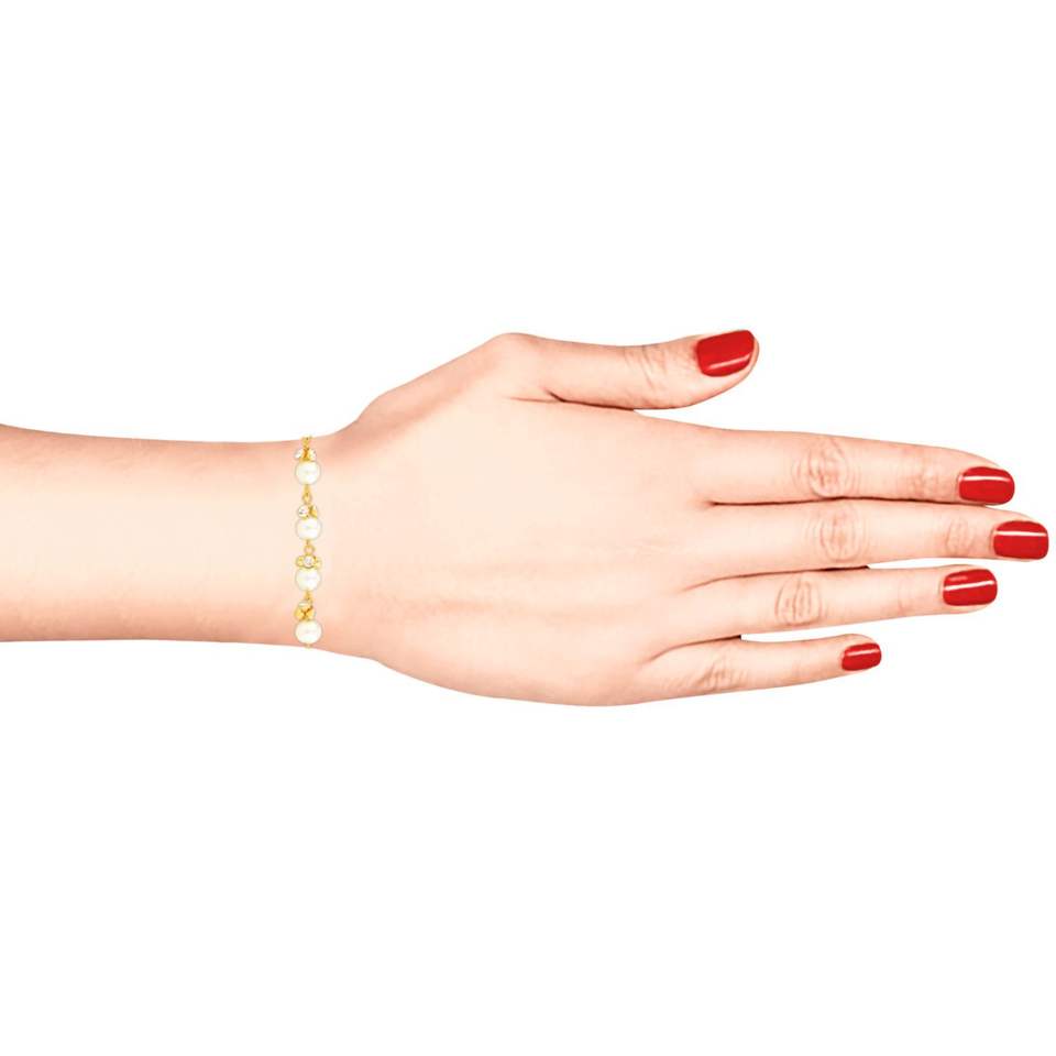 Design:Elegant delicate link chain faux pearl charm bracelet