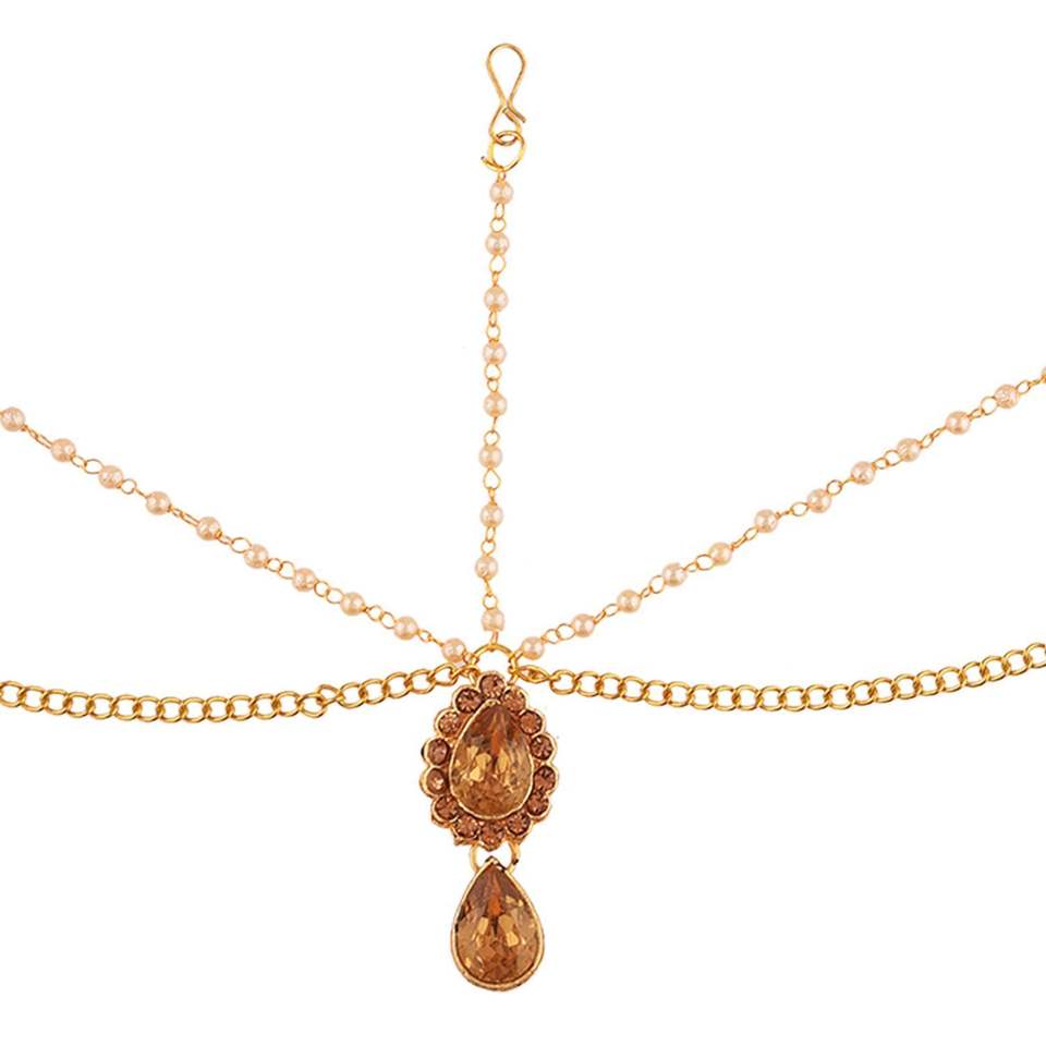 Indian Jewellery Manufacturers Crystal Rhinestone Faux Pearl Beaded Bridal Maang Tikka Head Chain Jewelry, Brown