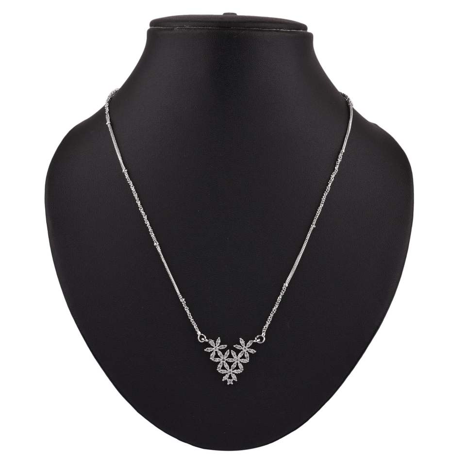 Indian Jewellery Manufacturers Cubic Zirconia Silver Floral Pendant Chain Necklace Valentine Jewelry Wholesale