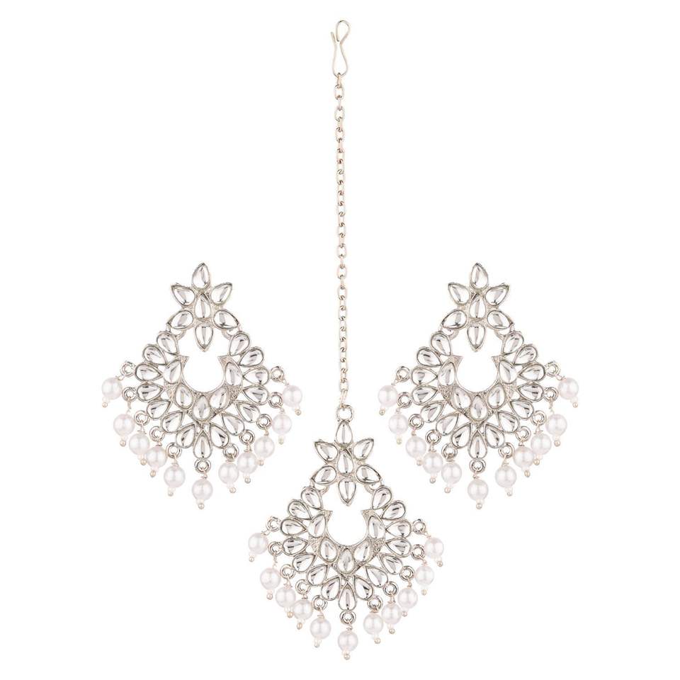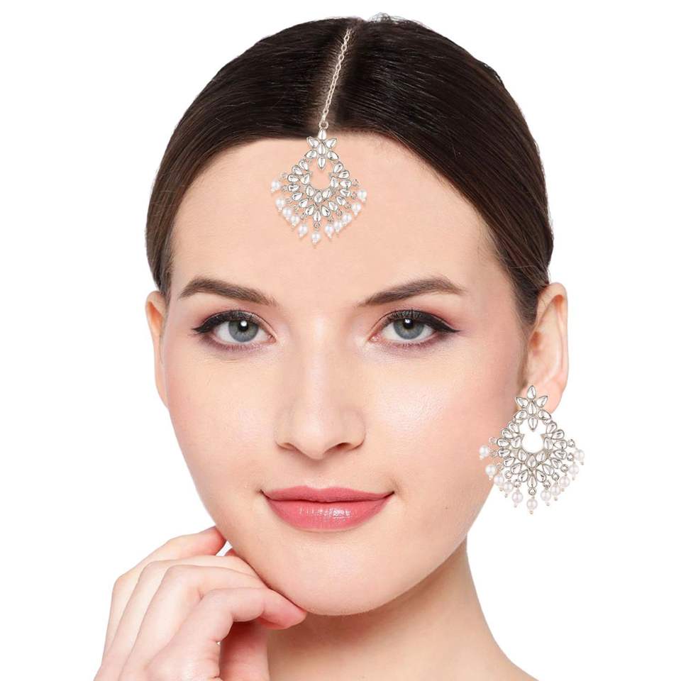 Design:Indian wedding crystal jewelry set, maang tikka earrings set